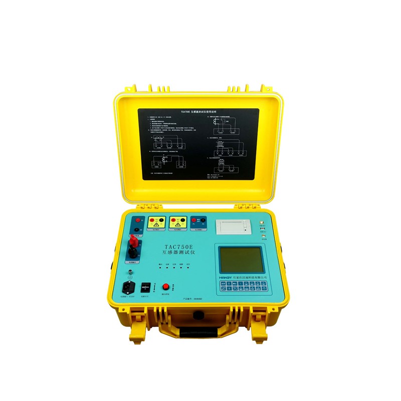 TAC750E互感器测试仪是针对继电保护专业试验电流和电压互感器励磁特性、变比、极性、CT二次绕组直流电阻、CT二次回路负载测量而设计。 1、采用电压法一次接线试验可同时完成CT励磁特性、变比、极性、二次绕组直流电阻测试工作,提高工作效率。 2、测量电流互感器变比、极性时无需短接其它二次绕组,提高工作效率。 3、CT二次回路施加交流电流,用于二次回路负载测量。 4、试验输出电压与输入电源隔离,保证设备和人身安全。 5、试验输出电压频率与输入电源频率无关,且输出电压频率可选择50Hz或60Hz。 6、无需外置升压器即可升压至2000V。 7、全自动测试无需人工调整。 8、自动绘制5%、10%误差曲线。 9、具有升流保持功能,用于测试电流互感器变比、极性、二次回路检查。 10、具有升压保持功能,用于二次交流耐压试验。 11、大屏幕透反式液晶显示器,室内外均可清晰显示。 12、超大容量存储器可存储20000组绕组的测试数据。 13、使用U盘转存数据文件和软件升级。 14、拐点电压按IEC60044-1标准计算。 15、简体中文、英文操作界面任意切换。 技术参数