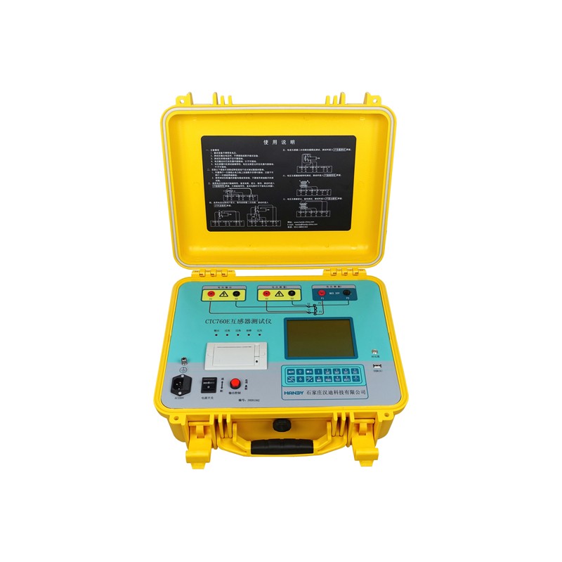 CTC760E互感器测试仪能够进行电流互感器和电压互感器励磁特性、变比、极性、二次绕组直流电阻、CT二次回路交流负载等测试工作。 1、综合采用直流法和变频法试验电流互感器励磁电压80kV以下的励磁特性,速度极快。 2、采用电压法测试电流互感器(包含变压器套管内CT)变比、极性。 3、内置电源具有输出电流方式,可采用电流法测试电流互感器变比、极性以及检查CT二次回路完整性。 4、具有升流输出功能,外置升流器输出最大电流200A(选配)。 5、测量电流互感器二次绕组直流电阻。 6、测量电流互感器二次回路负载。 7、测试电压互感器励磁特性、变比、极性、二次绕组直流电阻。 8、按IEC60044-1(GB1208-2006)、IEC60044-6(GB16847-1997)标准绘制励磁曲线和计算拐点电压/电流。 9、绘制5%、10%误差曲线。 10、比值差、相位差测量。 11、测定剩磁系数、励磁电感、二次时间常数、暂态面积系数、峰值瞬时误差、准 确限值系数、仪表保安系数。 12、绘制电流互感器磁滞回线。 13、透反式显示器,室内外均可清晰显示数据和曲线。 14、高速热敏打印机可打印测试数据和曲线。 15、自动检测接线,接线错误报警提示。 16、内置超大容量存储器可存储20000组绕组测试数据,掉电不丢失。 17、使用U盘将测试数据转存至PC机生成word格式报告。 18、使用U盘升级软件。 19、简体中文、英文操作界面任意切换。 技术参数