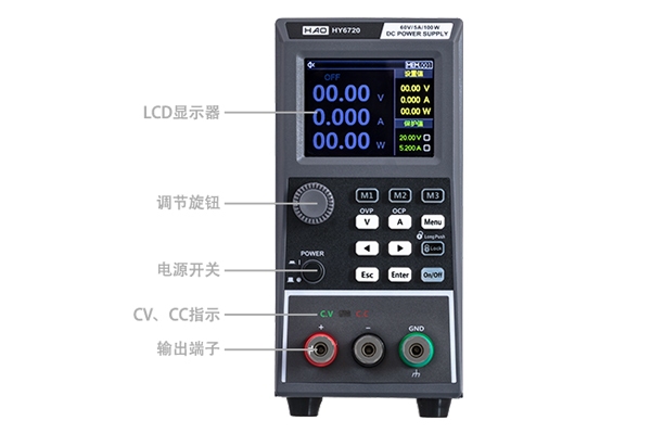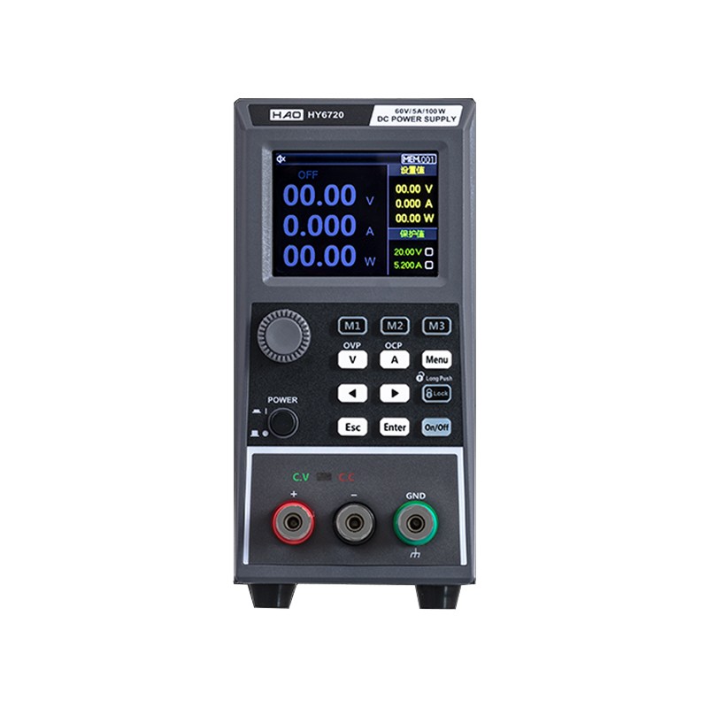 HY6720系列开关直流电源分别支持60V/5A、60V/8A的宽范围输出,输出功率比高达3.0,大大提高了产品的应用范围,减小电源设备的采购投入;产品全系列标配标准RS232通信接口,支持SCPI协议,方便远程控制。其远端补偿模块,可避免负载线上的压降引起的测试不准确问题;低纹波噪声、高精度电压/电流输出及显示,具有多重保护功能,保证产品工作的可靠性。