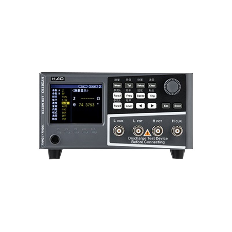 简要介绍 HY2811D 、HY2810D LCR数字电桥是我司推出的新一代低频元件测量仪器。体积小、重量轻、外形美观、操作简便、超高性价比、测试稳定性好。可满足生产线质量保证、进货检验及自动化生产的需要。 产品特点 2.8寸TFT液晶显示,所有测试结果与参数一目了然; 界面自带分选结果显示; 测试速度快(23次/s); 基本准确度0.1%; 四档分选; 30Ω、100Ω两种输出阻抗 测量应用 无源元件: 电容器、电感器、磁芯、电阻器、压电器件、变压器、芯片组件和网络元件等的阻抗参数评估 其他元件: 印制电路板、继电器、开关、电缆、电池等的阻抗评估 技术指标 型号 | HY2811D/ HY2810D | 显示 | 2.8" TFT240*320分辨率 | 测试信号频率 | 测试频率 | 100Hz,120Hz,1kHz,10kHz | 最小分辨率 | 4位显示 | 准确度 | 0.02% | AC 电平 | 测试信号电压范围 | 0.1V,0.3V,1V | 准确度 | ±10%×设定值 | AC源内阻 | ISO ON | 正常模式:100Ω | ISO OFF | 30Ω / 100Ω 可选择 | 输出阻抗准确度 | ±5% | 测试参数 | Cs-Rs, Cs-D, Cp-Rp, Cp-D, Lp-Rp, Lp-Q, Ls-Rs, Ls-Q,Rs-Q, Rp-Q, R-X, Z-θr, Z-θd, Z-D, Z-Q, Auto LCZ | 测试速度(ms/次) | 快速: 43ms;中速: 185ms;慢速: 350ms | 显示范围 | R, X, |Z|:0.00001Ω ~ 99.9999MΩ; G, B, |Z|:0.00001uS ~999.999S L:0.00001uH ~ 9.99999kH; C:0.00001pF ~ 999.999mF; D:0.00001 ~ 9.99999; Q:0.00001 ~ 99999.9; θd: -179.999° ~ 179.999°; θr:-3.14159 ~ 3.14159; | 清零功能 | 开路、短路 | 等效方式 | 串联,并联 | 量程方式 | 自动,保持 | 触发方式 | 内部,手动 | 数学运算 | 直读,△ABS,△% | 比较器 | 4档分选,BIN1-BIN3,NG,AUX,PASS,面板LCD显示 | 使用电源 | 110V/220V 50/60Hz 20W-30W | 上位机功能 | 上位机统计分析 | 订货信息 | 标准配件 | HY2811D HY26004:四端开尔文测试电缆 HY2810D HY26004:四端开尔文测试电缆 HY26048:四端测试夹具 HY26001: 短路片 上位机软件 |