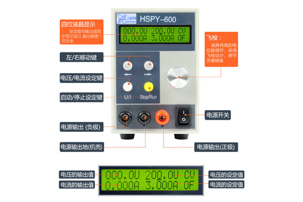 HSPY-可调直流稳压电源系列产品 CPU实时跟踪/低温漂/智能保护/高精度/高分辨率 恒流/恒压、恒功率、电能、多场景 HSPY程控直流稳压电源,可订制,可集成,可应用于实验室、学校、科研机构、企业 长时间满载工作,高精度,高稳定性,低温漂 液晶四位显示电压电流,CPU实时跟踪,RS485通讯或RS232/标准MODBUS协议程控设计