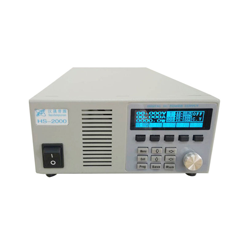 核心优势 1、3.12英寸OLED五位显示 2、新颖设计可显多个参数状态 3、提供过压/过流/短路保护功能 4、具有风扇控速功能,自控转速降低噪声 5、单通道输出/具有超低纹波和噪声 6、总功率输出高达2000W 7、键盘锁功能,防止误操作 8、优异的负载调解率和线性调解率 9、具有Sense功能 10、自动补偿大电流输出时负载引线引起的降压 11、五个快捷键 12、快捷键对应的设定值在面板上直接显示,可直接更改并存储 13、能显示输出电压/电流/功率设定 14、支持电压、电流等线性可编程功能 15、配置接口(选配):USB、RJ45、RS485、RS232、DigitalI/O hspy-2000可编程直流稳压电源 新增可编程功能——预设五组 常用的数据点保存在快捷键上,方便生产线调试快速使用。 高精度,高分辨率,高稳定性具有Sense补偿功能 0-2000V 2000W可编程直流稳压电源产品参数