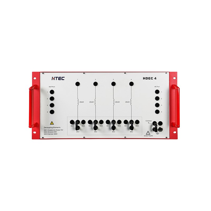 控制线/通信线去耦网络,满足IEC/EN 61000-4-5和GB/T 17626.5 去耦峰值:最大±7.0kV 去耦参数:20mH电感 + GAS + ABDs* 额定输入电压:250Vac,300Vdc 最大电流:2A 最大线数量:4条 输入/输出端口:香蕉插座 通信带宽:通常100kHz,最大10MHz * 20mH去耦电感有差模和共模两种,根据客户需求制作 |