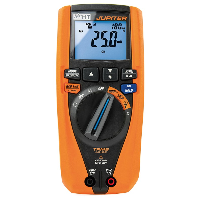 新型UPITER是又一款HT自主的创新测试设备,它进一步用作真有效值TRMS测量的强大数字万用表,且允许根据标准CEI64-8进行电气安全测试(RCD、Ra、Loop)。 该仪器属于CATV600V测量类别,所有型号均提供自动范围功能,并能进行背光显示。设计非常现代和有吸引力,但与此同时,符合人体工程学轻便设计,提供***易用性。 技术参数 DC电压 | 量程 | 0.0V~690.0V | 分辨率 | 0.1V | 准确度 | ±(0.5%读数+2显示字) | AC真有效值,DC,AC+DC真有效值,LoZ电压 | 量程 | 0.5V~690.0V | 频率带宽 | 32Hz~1Hz | 分辨率 | 0.1V | 准确度 | ±(0.5%读数+2显示字) | AC真有效值电流通过柔性电流钳F3000U | 量程 | 1A~3000A | 基本分辨率 | 0.01A | 准确度 | ±(0.5%读数+2显示字) | AC真有效值,DC,AC+DC真有效值电流通过标准电流钳 | 量程 | 1mV-1000mV | 分辨率 | 1mV | 准确度 | ±(0.5%读数+2显示字) | 浪涌电流(DIRC)-柔性电流钳 F3000U | 量程 | 1A~3000A | 基本分辨率 | 0.01A | 频率带宽 | 42.5Hz~69Hz | 准确度 | ±(2.0%reading+2digits) | 峰值响应时间 | 1ms | 最大有效值响应 | 16.6ms,20ms,50ms,100ms,150ms,175ms,200ms | 浪涌电流(DIRC)-标准电流钳 | 量程 | 1mV~1000mV | 分辨率 | 1mV | 频率带宽 | 42.5Hz~69Hz | 准确度 | ±(2.0%读数+2显示字) | 峰值响应时间 | 1ms | 最大有效值响应 | 16.6ms,20ms,50ms,100ms,150ms,175ms,200ms | 电阻和连续性测量 | 量程 | 0.001999Ω | 基本分辨率 | 0.1Ω | 准确度 | ±(1.0%读数+5显示字) | 蜂鸣器 | R<30Ω | 电压/电流谐波 | 谐波测量 | DC,1~25+THD% | 频率带宽 | 42.5Hz~69Hz | 分辨率 | 0.1V/0.1A | 基本准确度 | ±(5.0%读数+10显示字) | 相序测试用1根表笔法 | 量程 | 100V~690V | 频率带宽 | 42.5Hz~69Hz | RCD(漏电)保护装置测试 | RCD类型 | AC,A,General | 跳闸时间测量mS/跳闸电流测量(mA) | L-PE电压量程 | 100V~690V | 频率范围 | 42.5Hz~69Hz | 跳闸时间测量 | △N可选其中之一30mA,100mA,300mA | 跳闸电流测量 | △N在30mA | 总接电阻在RCD未跳闸时 | L-PE电压量程 | 100V~69V | 频率范围 | 42.5Hz~69Hz | 测试电流 | <15mA | 量程 | 1Ω~1999Ω | 分辨率 | 1Ω | 准确度 | ±(5.0%读数+3显示字) | L-N,L-L,L-PE回路/线路阻抗测量 | L-PE,L-N电压量程 | 100V~690V | 频率范围 | 42.5Hz~69Hz | 测试电流 | 100mA | 量程 | 0.1Ω~199.9Ω | 基本准确度 | ±(5.0%读数+3显示字) | 基本特性 | 仪器安全 | EC/EN61010-1,IEC/EN61010-2-030,IEC/EN61010-2-033 | EMC | IEC/EN61326-1 | RCD测试 | EC/EN61557-6 | 回路 | L-L,L-N,L-PE | Ra测试 | IEC/EN61557-3 | 相序测试 | ECEN61557-7 | 绝缘保护 | 双绝缘 | 污染等级 | 2 | 测试安全等级 | CAT IV 600V,CATⅡ 690V对地或两输入端之间 | 机械特性 | 尺寸(长x宽x高) | 175×85×55mm | 重量(含电池) | 420g | 防护等级 | IP40 | 电源供应 | 电池类型 | 4x1.5V碱性电池 型号AAA IEC LR03 | 自动关机 | 结束操作15分钟后 |