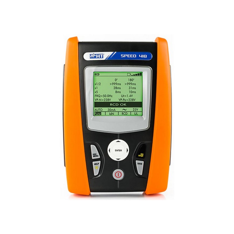 SPEED418能在不引起差动开关跳闸(通常用于TT系统,作为探头接地测量的另一种选择)的前提下测量总接地电阻,并评估对民用及工业用电气系统的差动开关执行的测试。SPEED418跟M73不同,它能把每次测量的结果保存在内存里,在专业软件的帮助下可以把所保存的数据下载到电脑上,也可以通过使用微细探针(可选配PR400)进行测量,这样连续进行多次测量时更加容易。 产品功能 RCD(型号A、AC、一般和选择型)的跳闸时间,电流分别为10、30、100、300和500mA RCD(型号AC和一般)的跳闸时间,电流分别为30、30x5、100、300mA RCD(型号A、AC、一般和选择型)的跳闸电流 没有RCD跳闸时间的总接地电阻 线路/环路阻抗,高分辨率(0.1mΩ)(带有可选择配件IMP57) 预期短路电流 相序指示 启动测量(配有可选微细探针PR400) 在线显示帮助 测量结果的保存 连接到个人电脑的光学/USB接口 安全标准:IEC/EN61010-1 测量等级:CAT Ⅲ 265V 电源:6x1.5V 尺寸:222x162x57mm 重量(含电池):1公斤 |