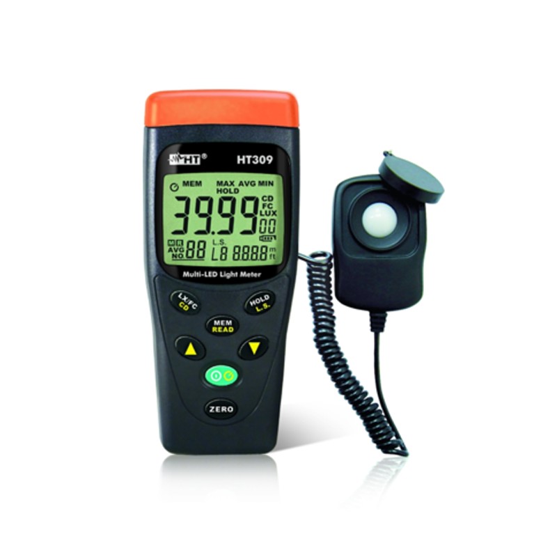 HT309是数字式照度计,量程达400KLux,不仅可以测量标准光源的照度,更可测量来自到各种颜色的LED光源的照度。 产品功能 量程:0.01-400Klux;0.01-40KFc 发光强度测量 LED光源的照度测量 准确度:±3%读数 调节器:数字调节 光谱响应补偿 数据保持,最大/最小/平均值 符合标准:Class A JIS C 1609:1993+CNS5119 |