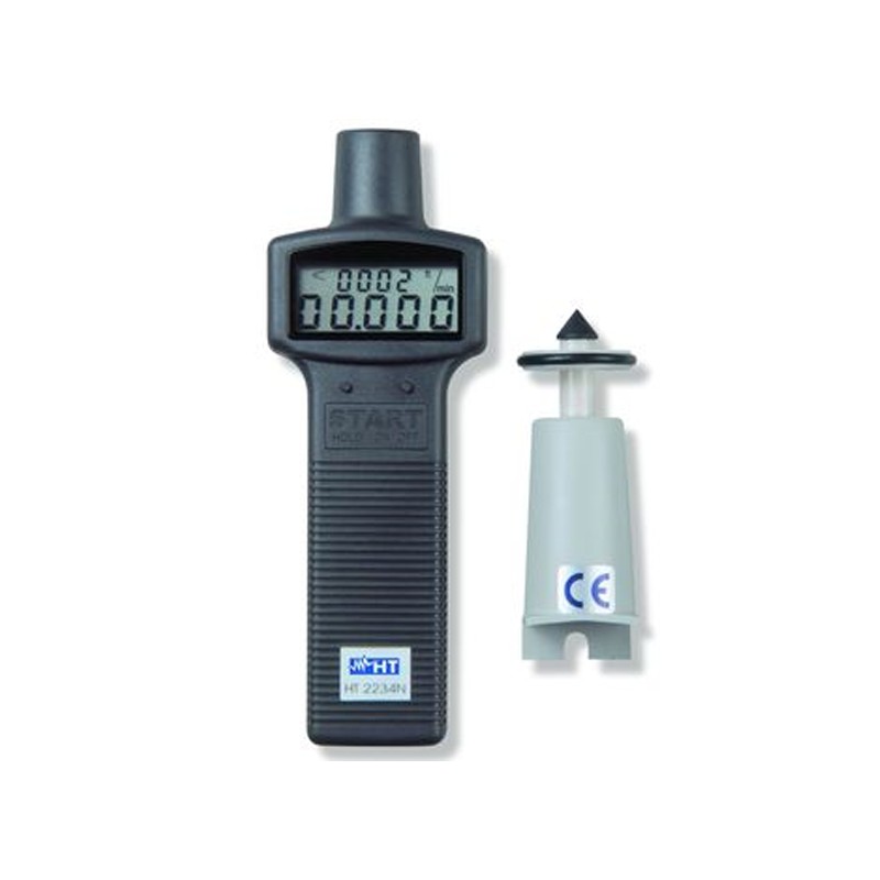 HT2234N是一种数字式转速计,根据从被测量目标接收到的激光射线,用接触或非接触的方式测量旋转部件(转盘和电动机等)的转速。没有接触速度范围:10.00 ÷ 99999 RPM,接触速度范围:20.00 ÷ 29999 RPM。离标的物的距离:50 ÷ 300mm。 产品功能 空气温度测量 用接触式或非接触式测量转速RPM 事件计数器 激光指示器 最大/最小/数据保持 自动关机 技术参数