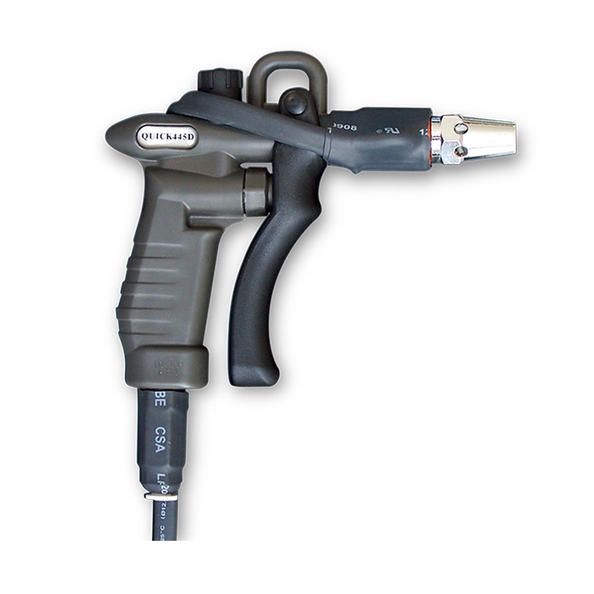 445D 离子吹尘枪 产品特点 1. 机身小巧、精致,使用方便。 2. 快速消除静电,更容易清洁细小敏感的部件和材料。 3. 内置独特的残余静电压调节装置,能快速有效地调整离子平衡度。 4. 一台电源供应器最多可同时接驳两把离子风枪。 5. 可单独选择购买 实用图例