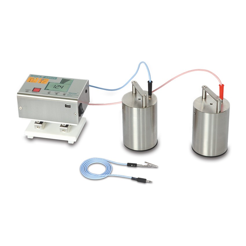 499ZC 重锤式表面阻抗测试仪 产品特点 1. 放置于被测物体表面可测试产品表面阻抗值 2. 测试电压自动切换,精度更高。 3. 多种测定模式均满足测试标准。 4. 测试数据LCD显示,更加直观。 5. 采用充电电池,方便环保。 技术参数 型号 | QUICK 499ZC | 测量范围 | 102.5 - 1013.5Ω | 测定模式 | 1、标准表面电阻测试模式 | 2、防静电材料和接地端子之间的阻抗测试模式 | 3、IEC规定的重锤阻抗测试模式 | 电源 | 3.7V可充电锂电池(可使用标准USB口充电或配套充电器进行充电) | LCD显示 | 1、测量结果以指数形式表示 | 2、测量次数显示 | 3、电池电量显示 | 测试时间 | 15s / 30s / 60s | 测试电压 | 自动电压切换模式 | 1、102.5 - 106Ω 10V, 10 mA max | 1、106 - 1013.5Ω 100V, 1 mA max | 分 辨 率 | 0.1个数量级 | 精 度 | ±0.5个数量级 | 操作环境 | 0℃ -49℃,相对湿度0 %-80 % | 外形尺寸 | 114*78*69 mm | 重量 | 约5.6Kg(包括电池) |