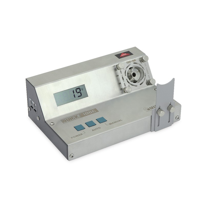 196C 风枪温度测试仪 1. 专业的热风拆焊台温度测试仪,传感器准确快速测量风口温度。 2. 设有自动关机功能,关机时间可以设定。 3. 设有[ M A X H O L D ]记录Max温度的功能。 4. 摄氏度和华氏度可以转换。 5. 可以根据不同类型风枪,更换测试接口。 6. 196C具备网络通讯接口联机新款TR系列智能风枪实现自动校准温度。