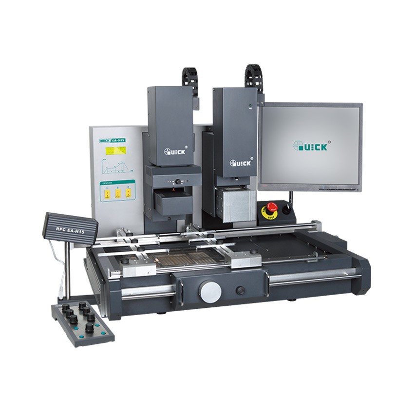 BGASOFT是专门针对QUICK EA-H15的控制软件,通过BGASOFT,可以进行温度测试、分析、调整、设置每个流程的温度参数。 BGA的回焊过程通常包括五个阶段:预热、保温、活化、回流、冷却,其中以保温、活化和焊接三个区域的温度和升温速率尤为重要。 预热段:中波暗红外的热量,能够使PCB很好的吸收,保障基础温度均匀。 保温段:消除元件与元件、PCB与元件之间的温差,防止PCB变形和元件损坏。 活化段:让助焊剂充分发挥活性,帮助焊接。 回流段:加热器不断升温达到峰值温度,使BGA锡球充分熔化与焊盘结合,并形成金属间化合物,实现真正焊接。 冷却段:顶部风扇和底部的横流风机,流程结束自动开启散热;降温速率可调 。