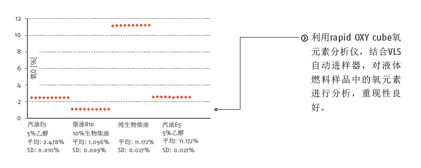 Elementar rapid OXY cube氧元素分析仪 精确的氧元素分析并不复杂。全新的rapid OXY cube完美的满足对氧浓度测量的需求。结合专利的柱吹扫技术,再也不需要担心干扰气体对分析结果的影响。新型rapid OXY cube氧元素分析仪将高准确度和无与伦比的操作舒适性,耐用性完美的融合在一起。 Elementar rapid OXY cube氧元素分析仪主要功能: ·简单易用 ·简化的样品前处理 ·最低的单个样品分析成本 ·氩气作为载气(氦气可选) ·EAS REDUCTOR? 还原管可连续分析1000多个样品 ·分析速度快 (5 min.) ·每天300次样品通量 Elementar rapid OXY cube氧元素分析仪可靠的结果 rapid OXY cube利用其创新性的柱吹扫技术确保了结果的高度可靠。分析结果精确是因为裂解反应器产生的干扰气体全部被排出,可以获得 < ± 0.1%的准确度。