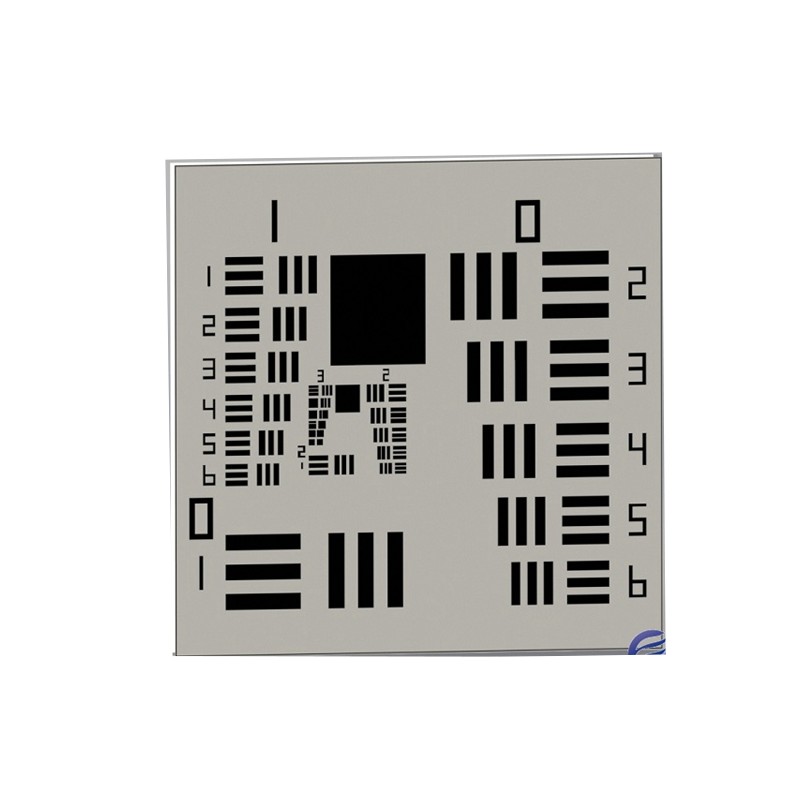 适合对镜头的分辨率和成像系统的畸变做评估使用。该产品根据美军标MIL-STD-150A设计制作,它的不同分辨率单元使用对应的组合元素标记,可以通过查表得出它的每个单元对应的分辨率 。
