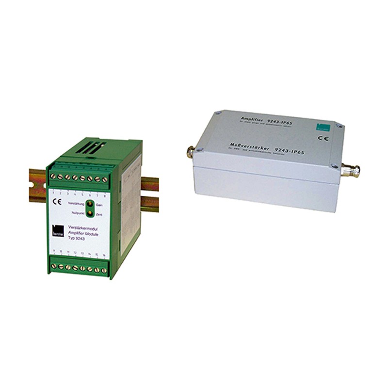 9243单/多通道应变信号放大器 在必须将来自应变计、电位传感器或DC/DC传感器的测量信号转换为标准信号的地方,使用9243型放大器模块。只需安装在传统DIN安装导轨上,就可以将放大器模块定位在传感器附近的位置。特别是在恶劣环境下,可提供IP65版本。 广泛的辅助电源范围和交流或直流之间的选择允许在开关柜中使用的标准电源上运行。内置高精度参考电压源用于校准。校准分流器也可以通过两个单独的端子连接。这允许故意对应变计传感器进行失谐,以进行校准或仅检查测量链。 高精度放大器对所施加的传感器信号进行放大。必要的增益因数通过DIP开关粗略调整,而微调则通过电位计进行。电流和电压输出同时可用。传感器激励由放大器模块本身执行,因此不需要额外的电压源。也可以使用DIP开关以2.5 V、5 V、10 V的步长进行设置。35 mA的最大馈电电流允许多个应变计并联,例如用于添加测量变量。通过使探针线直接在传感器本身的现场测量实际馈电电压(6线技术),避免了由改变线路长度或由于影响传感器电缆的温度波动引起的测量误差。波动会立即以电子方式纠正。放大器的截止频率可以在10 Hz和1 kHz之间切换。用于配置整个设备的DIP开关在盖子下很容易接近。测量放大器本身由15 V和30 V之间的电压供电。在内部,产生高度精确的短路保护传感器激励电压,并用于为传感器的测量电桥供电。放大器的输入范围适用于0.5至30mV/V之间的灵敏度,也适用于半导体应变计。 模拟输出电压可设置为0至±5 V或0至±10 V。DIP开关用于设置输入范围。通过安装在电路板上的多匝电位计进行微调和零点设置。传感器通过用户友好的螺丝端子连接,并提供辅助电源。 如果有必要,IP67版本的放大器可以通过夹紧、胶粘或借助电缆扎带实现。开路板有安装孔,便于组装。放大器的极限频率为1 kHz。 产品特点 精度<0.05% 模拟量电压输出0... ±5 V或0...±10V或电流输出0...20mA或4...20mA 可接6线制和4线制传感器 信号与电源之间的隔离 截止频率1 kHz,可选配4kHz 通过DIP开关进行配置 易于安装在DIN安装导轨上(可选配IP67保护等级) |