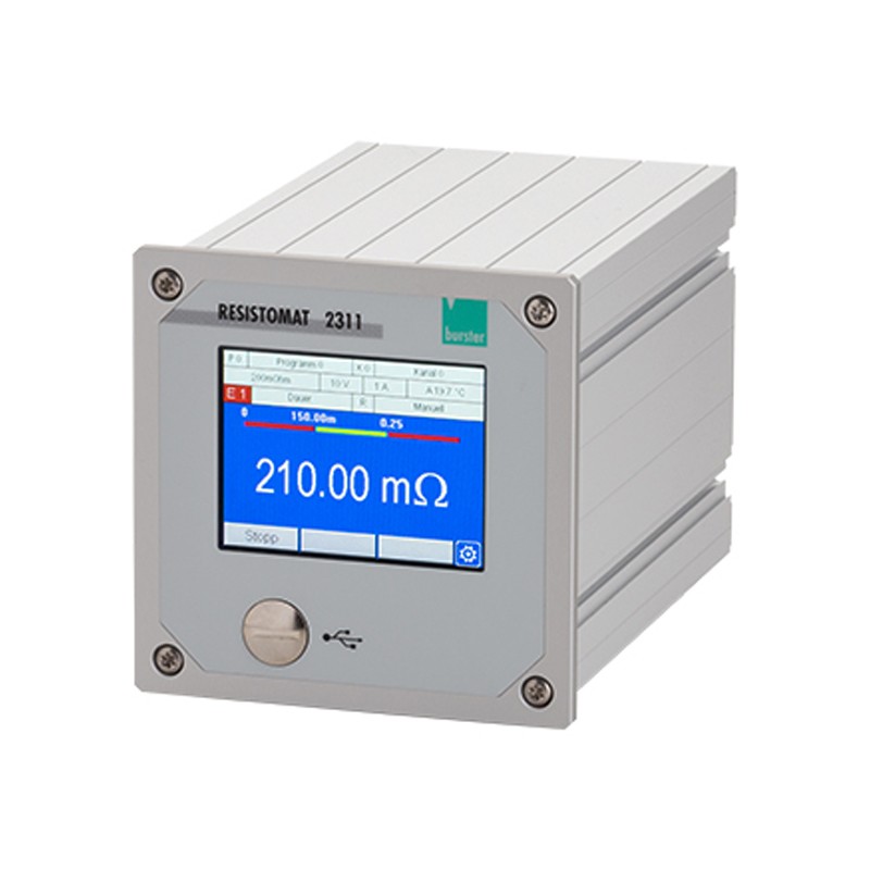 2311电阻测试仪 RESISTOMAT® 2311 型专为自动化系统中的高速应用而设计和优化。每秒可进行多达 100 次测量。它基于久经考验的四线测量方法工作,其中消除了测试引线电阻和接触电阻。仪器引线通过内置的开路检测器进行损坏监测。 带有开关输出的 2 路和 4 路比较器可用于分类和选择。当然,温度补偿可用于任何测试对象材料。可以输入特定的温度系数。使用 PT100 传感器或带模拟输出的温度变送器(高温计)进行温度记录。 开发了一种用于在测量电感测试对象时保护测量输入的特殊电路,以防止测试对象断开时产生的电压峰值损坏仪表。 一个特殊的应用领域是测量接触电阻(干电路测量),因为负载电压被限制在 20 mV 以避免所谓的“熔接”(DIN IEC 512)。 所有设备设置都可以单独存储在多达 32 个测量程序中。当然,所有设备设置也可以通过以太网、USB(默认)或现场总线接口(可选)进行。高达 900 可以使用集成的数据记录器存储每个测量程序的测量值。 产品特点 测量范围为 20 mΩ … 至 200 kΩ 分辨率高达 1 μΩ 测量精度 0.03 % of reading 从 10 ms/测量开始的高速测量,包括评估 所有材料的温度补偿 热电电压补偿 输入保护高达 400 Veff 32个可调测量程序 符合 DIN IEC 512 的干式电路测量 技术参数 测量参数 | 测量范围 | 20.000 mΩ | 200.00 mΩ | 2.0000 mΩ | 20.000 mΩ | 200.00 mΩ | 2.0000 mΩ | 20.000 mΩ | 200.00 mΩ | 分辨率 | 1 μΩ | 10 μΩ | 100 μΩ | 1 μΩ | 10 μΩ | 100 μΩ | 1 μΩ | 10 μΩ | 大/小测量电流 | 1A 1A | 100 mA 1A | 10 mA 100 mA | 10 mA 100 mA | 1 mA 10 mA | 1mA 1mA | 100 μA 100 μA | 10 μA 10 μA | 测量误差 (禁用温度补偿功能) | 读数0.03% ±2字 | 测量模式 | R.Z,冷却曲线,最大值/最小值 | 测量值记录方式 | 仪器内部数据记录、U盘记录、外部通讯记录 | 温度测量(PT100温度传感器) | 测量范围 | 0 ...100 °C | 分辨率 | 0.1°C | 测量误差 | 0.1°C | 温度记录 | 通过连接外部PT100传感器 | 温度补偿 | 10种不同的温度系数可供选择和单独设置 |