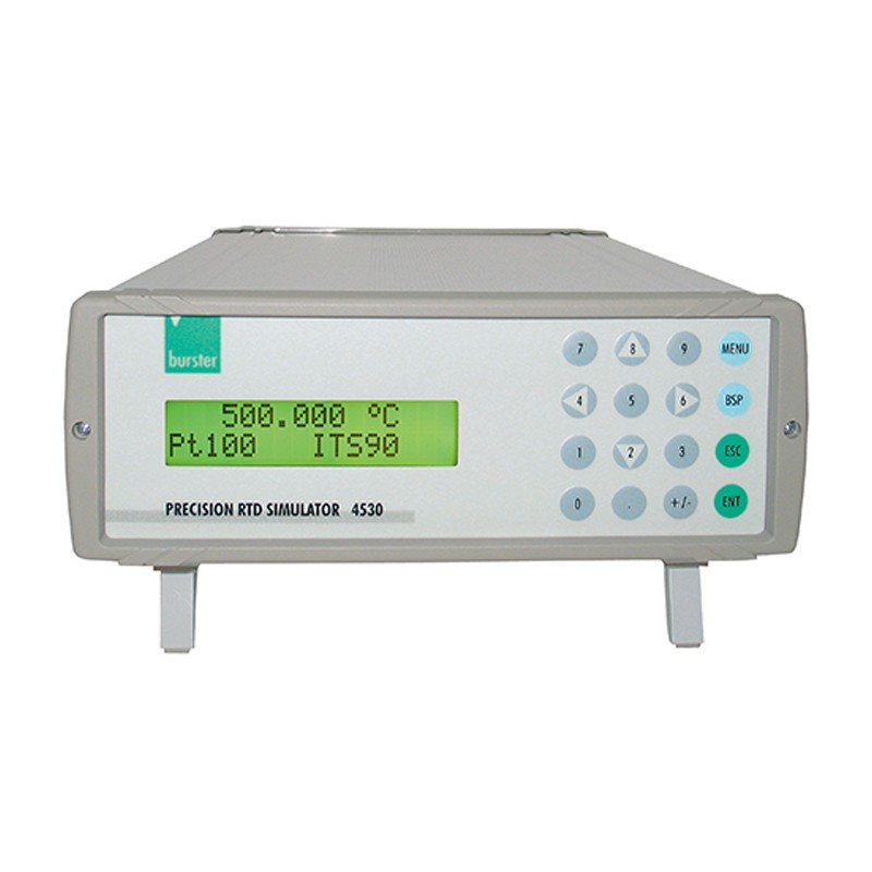 4530高精度RTD模拟器 精密RTD模拟器用于必须检查或校准高精度测量仪器或控制装置的地方。该模拟器适用于需要计算机控制电阻模拟来自动执行校准程序的校准实验室和服务中心。 根据ITS 90或IPTS 68标准,可以非常高精度地模拟所有标准铂和镍RTD。 温度调节器,传感器等通常会提供脉冲信号电流,以减少RTD的自热。因此,具有电子仿真RTD的设备倾向于摆动,并且不适用于该应用。在此,RTD仿真器模型4530的优势变得显而易见,因为它可以通过真实的欧姆仿真来模拟电阻传感器而不会出现问题。 当然,RTD仿真器也可以用作经典电阻模拟器。 该设备采用坚固的铝制外壳。键盘和显示屏在前面板上。它可以在背面进行2线,3线和4线连接。 可以通过简单的菜单导航选择Pt100,Pt200,Pt500,Pt1000,Ni100或Ni1000。此外,可以选择ITS90(DIN EN 60751)或IPTS 68(DIN 43760)和两个系数α= 0.385(欧洲)或α= 0.392(美国)的温度标度。输入特性值后,可以通过数字键盘非常简单地输入温度水平。当前设置的值显示在显示屏上。 具有低热电压和稳定箔电阻且温度系数很小的继电器是模拟器的核心。 产品特点 Pt100,Pt200,Pt500,Pt1000,Ni100和Ni1000传感器的仿真 精度0.02°C 温度秤ITS 90,IPTS 68 真实欧姆模拟 通过RS232 / IEEE488 / USB转换器手动或远程控制 技术参数