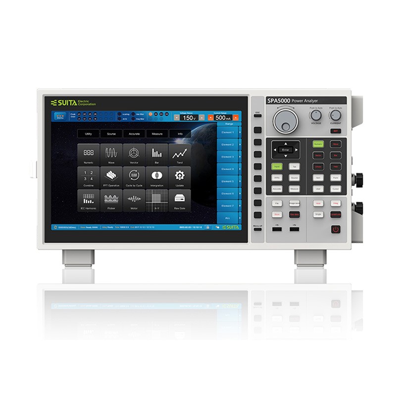 SPA5000 功率分析仪 功率分析仪 SPA5000具备多通道输入、高速采样、实时数值显示等多种功能,并在传统功率分析仪的基础上增添谐波分析、电机评价、闪变测量等功能,超高的精度和宽广的量程使其可以广泛应用于不同行业,如机器人、电动汽车、清洁能源、家用电器、航空电子等,对电气系统进行高效测量和分析。 主要性能特点