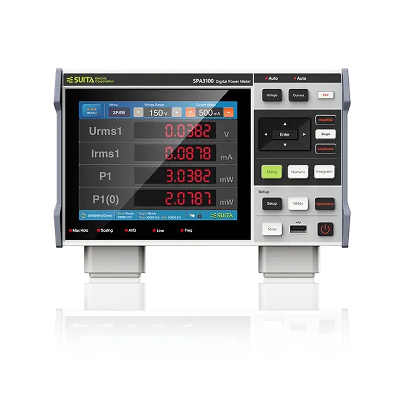 为功率测量提供帮助 SPA3100电压测量范围更宽,体积小结构紧凑的同时价格更加优惠,是适用于功耗测试台架和生产线或检测工作台上的理想机型。SPA3100同时还具备实时波形显示,波形数据记录及谐波分析等功能,能够帮助实验人员完成部分谐波污染严重设备的功率相关测试。