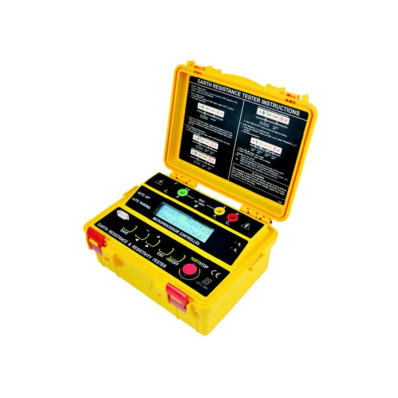 产品特点 ●使用微处理器系统控制设计,内建自动消除线阻功能,准确度高,可靠度高。 ●可作下列的量测:接地电压(ACV)/接地电阻(Ω)/土壤电阻率(p) ●采用16(字)X2(行)液晶显示器。 ●可作接地阻抗四线式、三线式和二线式的量测。 ●自动检测接地棒连接状态。 ●自动检查电流状态(Rc)。 ●自动检查电压状态(Rp)。 ●自动换文件功能。 ●自动关机功能设计。 ●植入土中的辅助接地棒间距为1.0m-50.0m。 ●读值自动锁定功能设计。 ●200笔量测值纪录功能设计 ●设计有传输线(CA-232),搭配计算机使用,所储存的数据可以传输到PC。 ●数据以光学LED的方式传送到CA-232传输线。 ●通过欧洲安全规范验证:EN61010-1CATIV300V、EN61326-1、EN61557-1、EN61157-5 技术参数