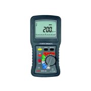 产品特点 ●使用微处理器系统控制设计。 ●三文件测试电压:250V、500V、1000V。 ●外来电压输入时,蜂鸣器会响应,同时也会显示在LCD上。 ●测试电压作模拟刻划显示。 ●自动换档、自动关机。 ●低阻抗和自动归零,有蜂鸣器响应。 ●绝缘阻抗量测时,输出电流为1mA。 ●测试时间在显示器上显示最长可到99.9秒。 ●符合英国第16版本(BS16th)。 ●符合IEC/EN61010-1CATⅢ、EN61326-1 技术参数