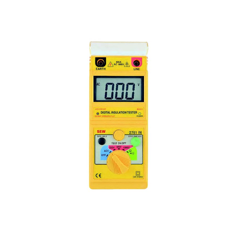产品特点 ●使用宽广型液晶显示器(68mmx34mm)。 ●三文件量测电压:250V、500V、1000V。 ●活电线路警示。 ●自动放电。 ●绝缘阻抗测试时,输出电流可达1mA。 ●导通测试时,短路电流为200mA。 ●可作交流电压量测。 ●保险丝保护设计。 ●量测时间3-5分钟,可自动关机。 ●有读值锁定功能。 ●符合英国第16版本(BS16th)。 ●符合IEC/EN61010-1CATⅢ600V、EN61326-1 技术参数