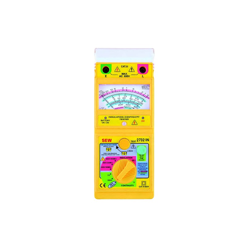 产品特点 ●吊线式高质量防震表头。 ●绝缘阻抗三文件量测电压:250V、500V、1000V。 ●两档导通测试:0-3Ω(低阻量测)、0-500Ω。 ●绝缘阻抗量测推动电流不小于1mA。 ●外来电压红色灯(LED)警示。 ●关机后自动放电。 ●检查电池电量功能。 ●电池能量消耗量低。 ●刻度板有反射镜,方便识读。 ●使用测试旋钮可作长时间量测。 ●保险丝保护设计。 ●符合EN61010-1CATⅢ600V、EN61326-1 ●符合英国第16版本(BS16th)。 技术参数