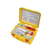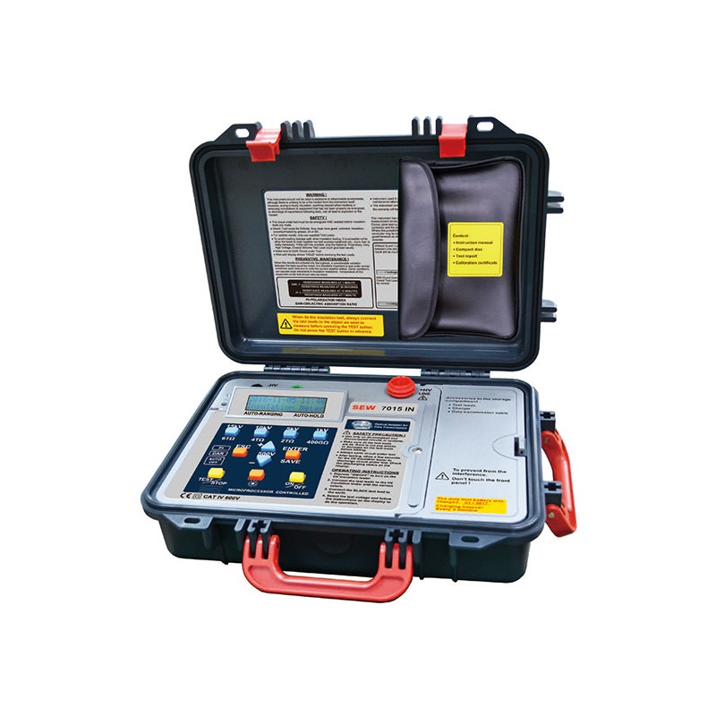 产品特点 ●上盖盖起来之防护等级:IP66。 ●使用微处理器系统控制设计。 ●短路电流可达到5mA。 ●16(字)×2(行)的大型液晶显示器。 ●共有30个量测电压文件位:500V,1kV,1.5kV,2kV,2.5kV,3kV,3.5kV,4kV,4.5kV,5kV,5.5kV,6kV,6.5kV,7kV,7.5kV,8kV,8.5kV,9kV, 9.5kV,10kV,10.5kV,11kV,11.5kV,12kV,12.5kV,13kV,13.5kV,14kV,14.5kV,15kV。 ●可以作交流电压(ACV)和直流电压(DCV)的量测。 ●有极化指数(PI)和电介质吸收比(DAR)功能设计。 ●自动换档(绝缘测试所有档位)。 ●背光设计。 ●在进行测试时,测试电压以模拟刻画显示。 ●操作程序会逐步呈现。 ●外来电压超过30Vac或30Vdc,蜂鸣器会响应警示。 ●读值自动锁定功能。 ●量测时间可作1~30分钟的调整。 ●具有时间显示功能。 ●电源不足显示。 ●200笔量测值记录功能设计。 ●有放电功能。 ●通过欧洲安全规范验证。 技术参数