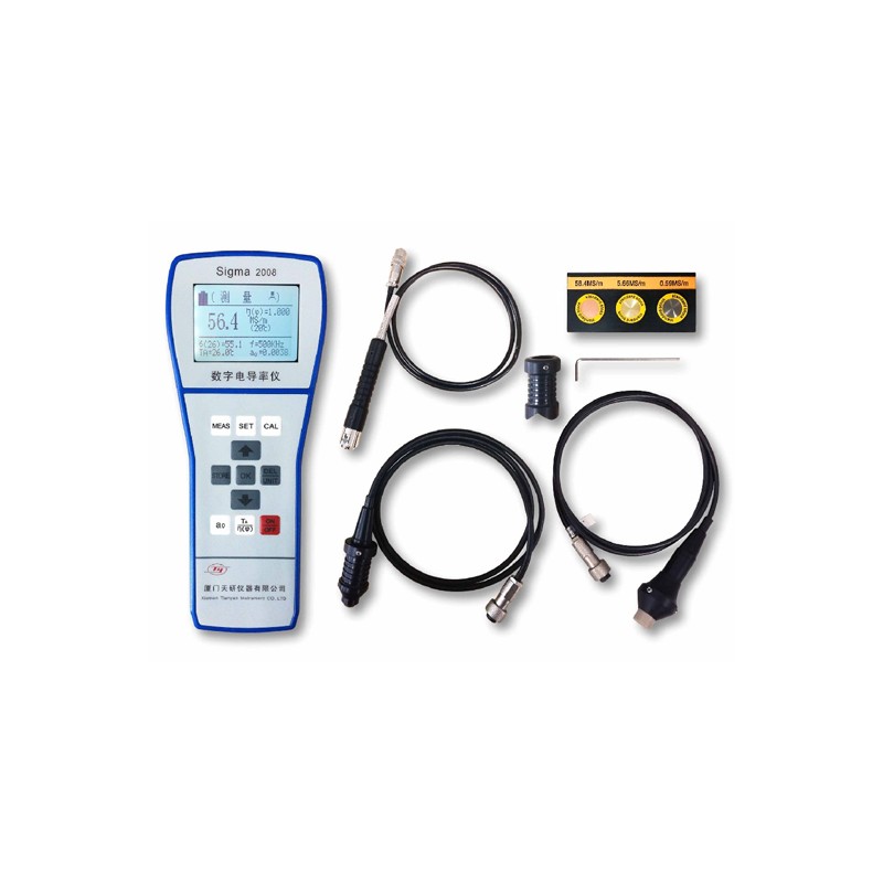 产品特点 外形美观,容易携带和握持。使用简单、方便。 大屏幕、大字体。可同时显示测试结果、测试频率、温度、温度系数等重要参数。 测量范围0.51~112%IACS或0.3~65MS/m覆盖所有的有色金属材料 有背光照明设计便于在弱光条件下读取检测数据。 Sigma2008 B具有2种可切换工作频率,60 KHz是为航空工业标准,500 KHz则为检测薄板材料。 Sigma2008 B具有直径8mm和直径14mm探头,大小工件都能灵活对应。 仪器具有曲率校准功能,并且附带∧型探头套,曲面材料也能检测。 仪器具有连续检测功能,能设定上下限报警,快速分拣材料。 独特的温度系数设置和自动校准方式的设计,使仪器操作更为简练、可靠。 仪器具有高达500μm的提离补偿,当试件表面有漆、薄膜、灰尘等绝缘涂层,仪器能确保测量精度。 多种温度补偿模式设计,结合试件的温度系数,在不同试验温度下使用都能确保测量精度。 检测探头具有互换性,用户可自行更换我公司提供的探头,无需匹配。 内置有数据存储器,能记录1.6万组测试数据及重要测试参数,可以连接计算机生成完整报告。 两种计量单位(MS/m或%IACS)方便选择,同时在测量界面也可直接切换电阻率示值。 三种语言选择:简体中文、日文、英文。 应用领域 非铁磁性材料电导率、电阻率测量 确定热处理的程度 检查热损伤,材料疲劳和裂纹 确定金属纯度 监控金属均匀性 金属分类 监控强度和硬度 检测粉末冶金零件的密度 技术参数