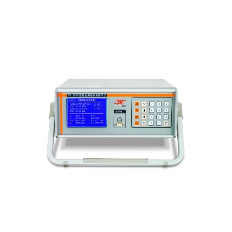 TX-1000A、B系列智能金属导线电阻率仪是在TX-300系列智能电阻率仪基础上推出的高分辨率、高精度的台式机型,可用于金属线材、棒材等材料电阻率、电导率测量及绞合电线电缆电阻、米电阻的高精度测量。 产品特点 用于测量φ1~φ45mm绞合线、多股电缆的电阻、米电阻、公里电阻及电机、变压器等直流电阻。 仪器分辨率高达10-8Ω(0.01µΩ),确保了直径高达Ø45mm(截面积高达1589mm2)的金属导线电阻、电导率测量精度。 配置高精度(±0.1℃ )温度传感器或含高精度导体温感器的测试夹具,大大提高了测量中温度自动补偿的精确度。 集先进电子技术、单片机技术、自动检测技术于一体、自动化功能强,操作简单。 仅按一次键,所有测量数值即可获得,无需任何计算,适合于连续、快速、准确检测。 交流电及电池供电设计,适用于现场及野外使用。 大屏幕,大字体,可同时显示电缆、米电阻、公里电阻、温度、测试电流、温度补偿系数等辅助参数,非常直观。 每次测量,具有自动选定恒流电流,自动电流换向,自动零点校正,克服热电压到线电阻引起的误差,保证每次测量值的精确性。 可以与所有标准1米测试夹具或非1米测试夹具适配,使用非常灵活。 可选配系列校准电阻,搭配相关软件,方便的实现仪器自动校准。 内置有数据存储器,可记录保存1000组测量数据及测量参数,连接上位计算机生成完整报告。 应用领域 电线电缆导电性能测量 生产车间分拣材料 技术参数