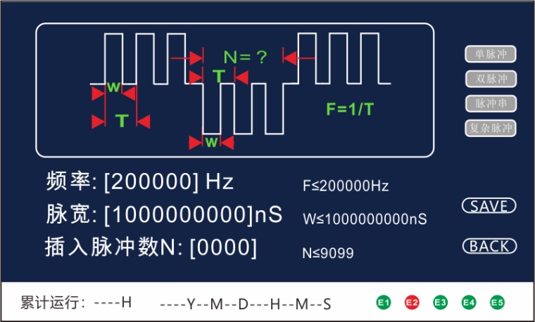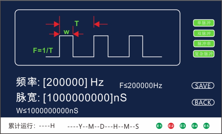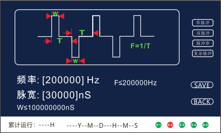 19“标准机箱 液晶触摸屏控制 强制风冷,高效可靠 50Hz—800Hz 脉宽连续可调 电压峰值连续可调 有效电流限制 过温保护 可设定连续工作时间 能量回收电路 故障告警功能 技术参数 脉冲输出形式 | 近似方波,正脉冲负脉冲交替 | 输入电压 | 单相AC220V±10% | 输入频率 | 50/60Hz | 最大功率 | 1000W(可定制) | 输出电压峰值 | 0~10kV(可定制) | 单脉冲能量 | <20焦耳/脉冲 | 输出频率 | 50Hz~800Hz(可根据客户要求最大100000Hz),分辨率1Hz | 脉冲脉宽 | 30~200µs连续可调 | 显示 | 液晶触摸屏 宝石蓝底白字 | 工作温度 | -10℃~+45℃ | 主电源输出范围 | 0-24VDC连续可调 | 主电源输出电流限值 | 0-40ADC连续可调 | 耐压 | 输入对外壳AC1500V / 1min无飞弧击穿现象 | 绝缘电抗 | 输出对外壳≥200MΩ(500V兆欧表) | 相对湿度 | <90%连续工作 | 噪声 | <60分贝 | 机箱尺寸 | 434mm(宽)×176mm(高)×500mm(深)不含拉手 |