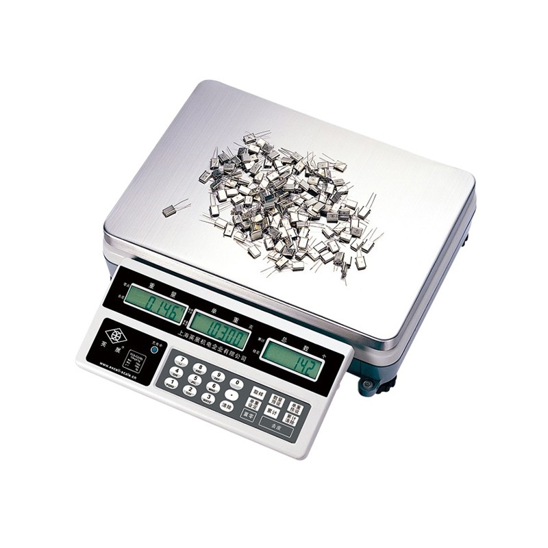 TCS-C(VB) IPX6工业计数电子秤 采用24bits AD,内部分辨率可达60万 (1)从加载起到达稳定所需时间短 (2)从负载移除起到达零点之速度快 (3)零点、扣重键启动之反应速度快 工业计数、反应灵敏、持久待机、直充两用、两用秤盘、LCD显示、ABS材质、旋转秤脚、可靠度高。 整机IPX6防水标准,铝托架经防蚀处理更加延长使用寿命。 具有设计良好的双重保护点功能(过载保护,向上保护),保护传感器延长产品使用寿命。 可调橡胶秤脚,可防止称重时电子秤移动偏移造成重量偏差。 外观防蟑垫片设计,防水防虫,延长机体使用寿命。 秤盘采用不锈钢304材质,耐腐蚀,不易生绣使用寿命更长。 外壳采用ABS材料,具有良好的光泽,质硬,坚韧,刚性、不易碎延长整机使用寿命。 工业级抗干扰能力(EMS+EMI):抗辐射、静电、电源输入干扰效能设计。 整机自主研发生产,包括结构和电路、软件,性能稳定,质量可靠,且能提供便捷的售前与售后。 功能特点 具有LED背光之功能。 具有累计次数及数量、定量警示之功能。 具有自动更正、双重过载保护之功能。 具有自动平均单重、全扣重、预扣重之功能。 可设定数量取样稳定范围。 可设定数量、单重上下限值量警。 具有自动零点追踪功能。 可预设50 组ID 与 ITEM 资料储存之功能。 内置蓄电池,具有低电量显示、自动关机功能。 按键采有触感之设计,采用3M背胶提升防水性及耐用性。 LCD可显示全扣重(重量栏: 6位、单重栏: 6位、数量栏: 6位)。 采用可接AC 100~240V频率 50/60 Hz (插电式),不用担心插座电压不对。 电源适配器DOE Level 6绿色能效。 直流:DC 6V/4 Ah 铅酸蓄电池(充电式)。 产品图说明