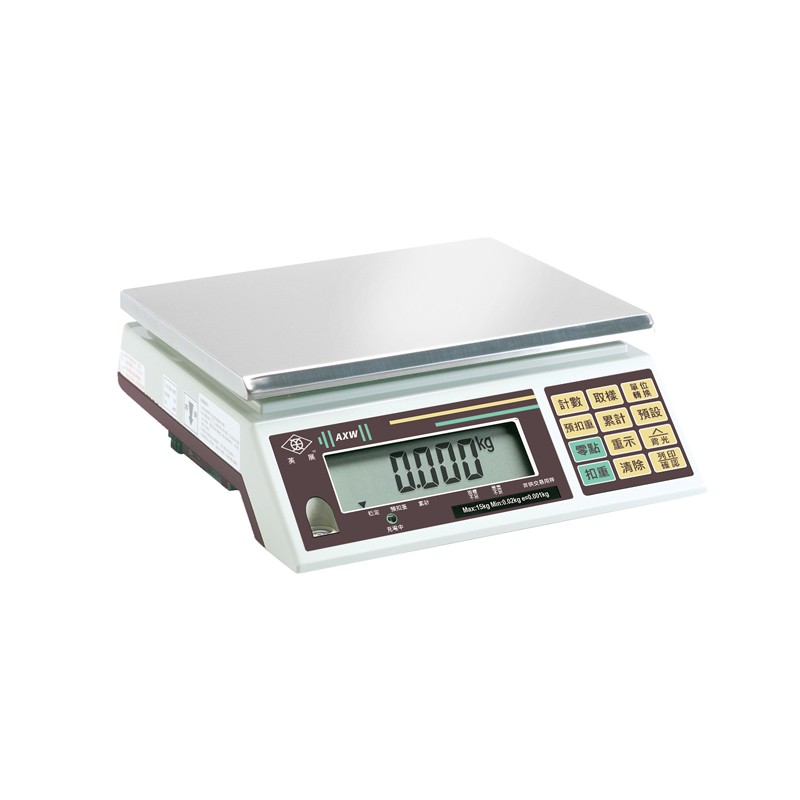 ACS-AXW 锂电池版-工业计重电子秤 采用24bits AD,内部分辨率可达60万 (1)从加载起到达稳定所需时间短 (2)从负载移除起到达零点之速度快 (3)零点、扣重键启动之反应速度快 工业计重、反应灵敏、待机时间长、交充两用、两用秤盘、LCD显示、ABS材质、旋转秤脚、可靠度高。 铝托架经防蚀处理更加延长使用寿命。 具有设计良好的双重保护点功能(过载保护,向上保护),保护传感器延长产品使用寿命。 可调橡胶秤脚,可防止称重时电子秤移动偏移造成重量偏差。 外观防蟑垫片设计,防水防虫,延长机体使用寿命。 秤盘采用不锈钢304材质,耐腐蚀,不易生绣使用寿命更长。 外壳采用ABS材料,具有良好的光泽,质硬,坚韧,刚性、不易碎延长整机使用寿命。 工业级抗干扰能力(EMS+EMI):抗辐射、静电、电源输入干扰效能设计。 整机自主研发生产,包括结构和电路、软件,性能稳定,质量可靠,且能提供便捷的售前与售后。 功能特点 具有LED背光之功能。 LCD可显示全扣重(重量栏: 6位、字高25mm) 。 选用含背光功能的大数字显示屏幕,清晰易读。 具有重量或数量预设、简易计数、重量暂留、计重及百分比之功能。 具有重量累计,重量检校(High、Low、OK),与预扣重等功能。 具有自动更正、自动零点追踪、双重之过载保护之功能。 可选择开机单位、地心引力值调整功能、外部重量校正功能。 具有多种单位选择之功能。 具有15段滤波稳定范围设定之功能。 具有定量警示及三点数位开关控制之功能。 采用可接AC 100~240V频率 50/60 Hz (插电式),不用担心插座电压不对。 电源适配器DOE Level 6绿色能效。 直流:18650 LI-Ion battery 锂电池(充电式)。 技术参数
