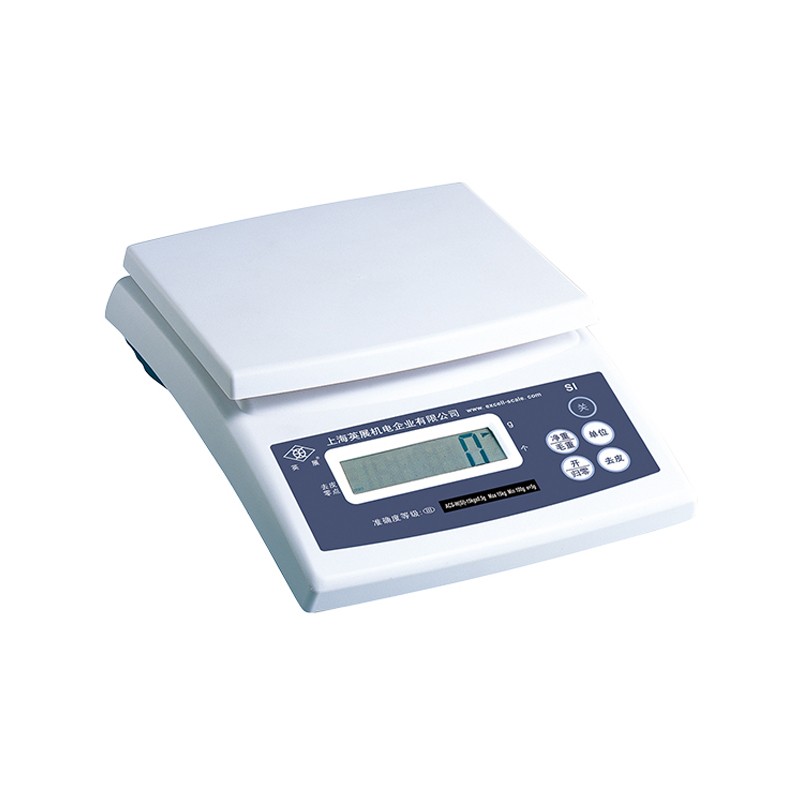 ACS-W(SI) 经济型电子计重秤 按键采有触感之设计,采用3M背胶提升防水性及耐用性。 秤盘采用不锈钢304材质,耐腐蚀,不易生绣使用寿命更长。 外壳采用ABS材料,具有良好的光泽,质硬,坚韧,刚性、不易碎延长整机使用寿命。 工业级抗干扰能力(EMS+EMI):抗辐射、静电、电源输入干扰效能设计。 整机自主研发生产,包括结构和电路、软件,性能稳定,质量可靠,且能提供便捷的售前与售后。 功能特点 液晶LCD显示清晰易读,具LCD背光功能。 具有简易计数、计重及百分比功能。 具有检校秤之功能(可以设定HI、OK、LO三点)。 具有自动更正、自动零点追踪之功能。 具有10段滤波穏定范围设定功能。 可设定暂留(Hold)功能。 具有低电量显示、自动关机功能。 采用可接AC 100~240V频率 50/60 Hz (插电式),不用担心插座电压不对。 电源适配器DOE Level 6绿色能效。 技术参数
