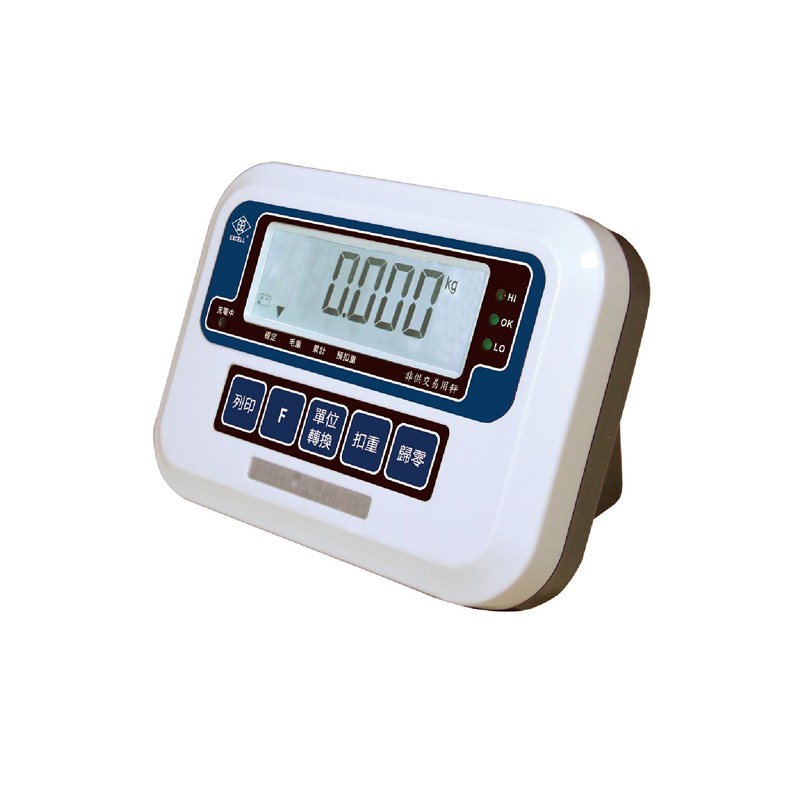 XK3150(W)-BTW-LCD 计重显示器 传感器激发电源:DC5V 5%,120mA( 可接8个350 Ω传感器) 误差分配系数 P ind:±0.5。 外壳采用ABS材料,具有良好的光泽,质硬,坚韧,刚性、不易碎延长整机使用寿命。 整机自主研发生产,包括结构和电路、软件,性能稳定,质量可靠,且能提供便捷的售前与售后。 功能特点 具有LED背光之功能。 LCD可显示全扣重(重量栏: 6位、字高28mm) 。 选用含背光功能的大数字显示屏幕,清晰易读。 具有重量或数量预设、简易计数、重量暂留、计重及百分比之功能。 具有重量累计,重量检校(High、Low、OK),与预扣重等功能。 具有自动更正、自动零点追踪、双重之过载保护之功能。 可选择开机单位、地心引力值调整功能、外部重量校正功能。 具有多种单位选择之功能。 具有定量警示及三点数位开关控制之功能。 按键采有触感之设计,采用3M背胶提升防水性及耐用性。 采用可接AC 220V频率 50Hz (插电式)。 直流:DC 6V/4 Ah 铅酸蓄电池(充电式)。 产品图说明