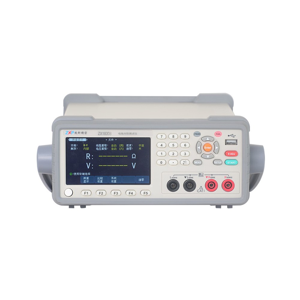 ZX1830B 简要说明 ZX1830B系列高压、高精度电池内阻测试仪是为了满足电池行业发展的新需求,针对低阻化和大型化锂电池组的测试和流水线高速分选而研发的。致新精密凭借多年在阻抗测试领域的技术优势,使得ZX5562系列的最高测试分辨率可达0.1uΩ、电压分辨率可达10uV。仪器标配RS232C和HANDLER接口,可方便地组建自动化测试系统。 ZX1830B 性能特点 ● 4.3寸LCD彩色液晶大屏显示,电池内阻R和电压V同时显示 ● 最小分辨率0.1uΩ、10uV ● 精度高,稳定性好,最快测试速度100次/秒 ● 测试线接触检查功能 ● 内置比较器功能,10档分选 ● HANDLER分选接口实现自动化设备联机功能 ● 标配RS232(选配RS485)通讯接口,支持SCPI及Modbus(RTU)两种通讯模式 ● 测试条件自动保存,仪器内部50组,U盘500组设置文件 ● 发明专利,无需安装软件可直接上传测试结果到电脑 ZX1830B 应用领域 ● 碱性电池、铅蓄电池的劣化情况测定及寿命评估 ● UPS检测 ● 蓄电池出厂检验 ● 高精度锂电池内阻、电压检测 ● 纽扣电池高速量产抽检 ● 燃料电池组的测量 ● 电动汽车锂电池等高压电池组的测试 ● 多节串联高压锂电池内阻和电压测量 ● 氢燃料电池电阻和电压的测量 ● 配套自动分选机进行电池内阻+电压自动测试 ● 电池的劣化状态和寿命评估 ● 超级电容(低内阻电容)的ESR测试 ZX1830B 技术参数