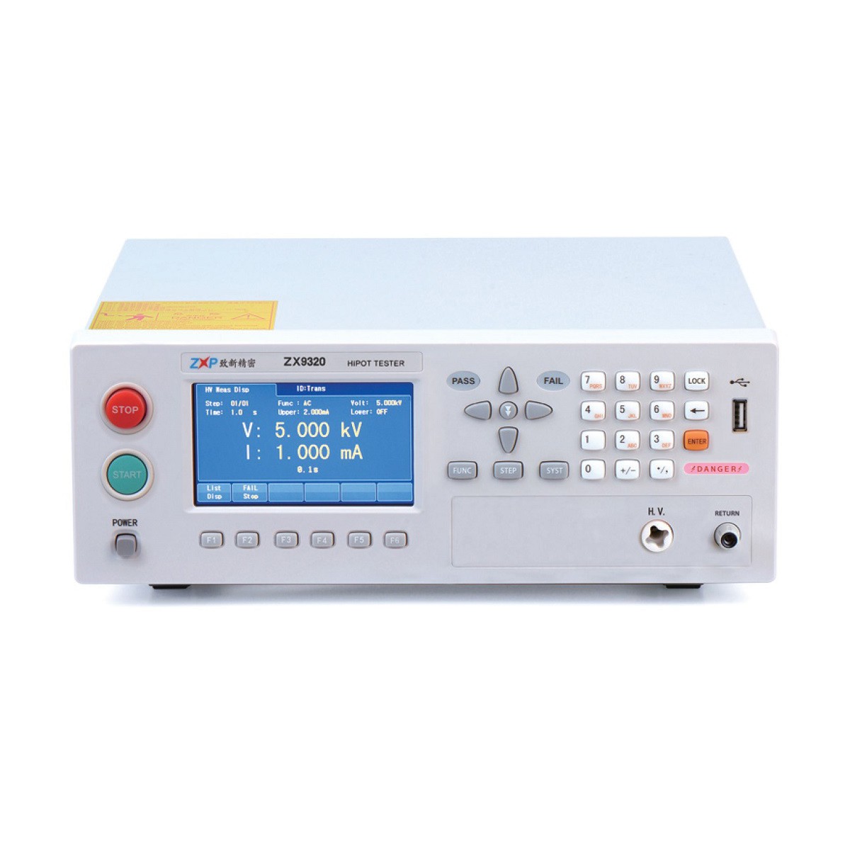 ZX9310/ZX9320系列 经济型绝缘耐压测试仪 概述 ZX9320/ZX9310系列绝缘耐压测试仪是常州致新推出的一款小功率经济型智能绝缘耐压测试仪器。体积小、重量轻,高性价比,适合简易高压测试应用。该系列产品可广泛应用于变压器、元器件、电气设备等的安全性能检查。 ZX9310/ZX9320系列 经济型绝缘耐压测试仪 产品特点 ●4.3”TFT-LCD,可完整呈现测试结果,提高判读效率 ●列表扫描显示,可一屏显示多步测试结果 ●键盘锁功能,保护记忆组数据,关机自动保存测试条件,下次无需重新设定 ●可存储100个测试步骤,4种测试模式可任意组合 ●电流底数清零功能 ●电弧侦测功能(兼容ZX9501) ●直流耐压测试具有直流高压快速放电功能,避免被测物上残余电压造成人员触电危险 ●防电墙技术随时侦测回路,杜绝触电伤害,保障人员安全(兼容ZX9501) ●电压上升时间、测试时间、下降时间,999.9秒内可任意设定。针对绝缘电阻可任意设定测试等待时间 ●配置PLC接口,方便组件自动化测试系统 订购信息 ●ZX9320:交直流绝缘耐压测试仪,最大交流电流20mA ●ZX9320A:交直流耐压测试仪,最大交流电流20mA ●ZX9320B:交流耐压测试仪,最大交流电流20mA ●ZX9310:交直流绝缘耐压测试仪,最大交流电流10mA ●ZX9310A:交直流耐压测试仪,最大交流电流10mA ●ZX9310B:交流耐压测试仪,最大交流电流10mA ●ZX9320S-4:交直流绝缘耐压测试仪,最大交流电流20mA,带4通道扫描接口 ●ZX9320S-2:交直流绝缘耐压测试仪,最大交流电流20mA,带2通道扫描接口 专业的量测技术 电弧侦测技术