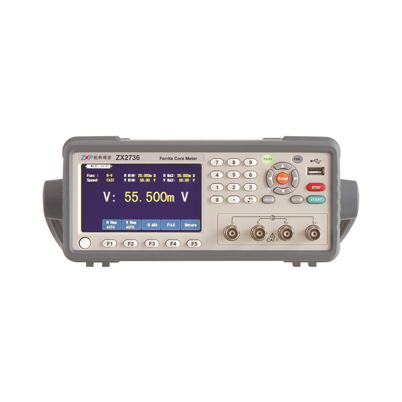 ZX2736 铁芯特性/VA特性测试仪 概述 ZX2736磁芯特性测试仪(伏安特性测试仪)是针对铁氧体磁芯、 铁芯分选设备而专门设计配套的智能型测试仪,也可作为一般交流恒流源或交流毫伏表使用,最小分辨率到1μV。该仪表模拟测量铁芯或磁芯在工作频率与工作电流时绕一圈所产生的感生电压。 ZX2736 铁芯特性/VA特性测试仪 产品特点 ● 提供的真有效值模式测量畸变波形准确度高、同时也有传统的平均值模式方便比对数据,一机两用超高性价比。 ● 使用范围广,可作低压交流恒流源与交流毫伏表示用。 ● 测量速度快,精度高,稳定性好 ● 合格与不合格LED灯指示、不同声音提示、不同颜色提示 ● 速度、量程可选择,满足不同客户要求 ● 简体中文界面,操作简单,一学即会。 ● 键盘锁定功能,关机自动保存测试条件,下次无需重设定 ● 测试条件即时保存,并支持多组测试条件保存于文件。 ● 14档合格,上超,下超,LED指示,蜂鸣器提示 订购信息 ●ZX2735:测试电流1mA~300mA(交流),2U标准机箱,上架方便 ●ZX2736:测试电流1mA~300mA(交流),4.3寸LCD显示、2U标准机箱,上架方便 ●ZX2736:测试电流1mA~500mA(交流),半波、正弦波、全波 ●ZX2736:测试电流1mA~1A(交流),半波、正弦波、全波 ZX2736 铁芯特性/VA特性测试仪 技术参数