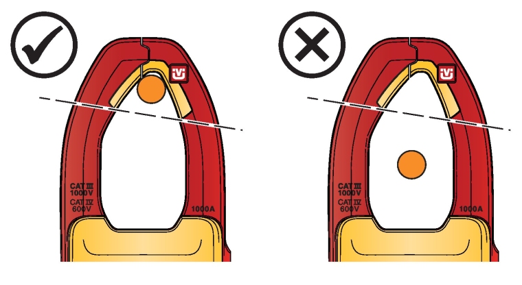 将电线尽可能置于靠近钳口开口的位置(见图)。  |