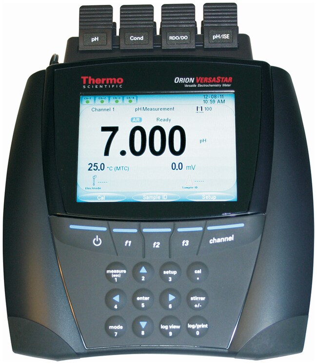 使用 Thermo Scientific™ Orion™ Versa Star Pro™ pH 值/ISE/电导/溶解氧多参数台式测量仪,实现高准确度、出色的性能和较大的灵活性。能够满足您对于具有挑战性的 pH 值、离子浓度、电导率、溶解氧和温度应用需求。便于查看高质量彩色显示屏上的测量结果,以及使用可互换模块定制 4 个测量仪通道。可记录多达 2000 条带有时间/日期标记的数据点集,并通过 USB 或 RS232 将记录轻松传输至打印机或计算机。选择带有 1 或 2 个 pH 值/ISE 模块的系统。
