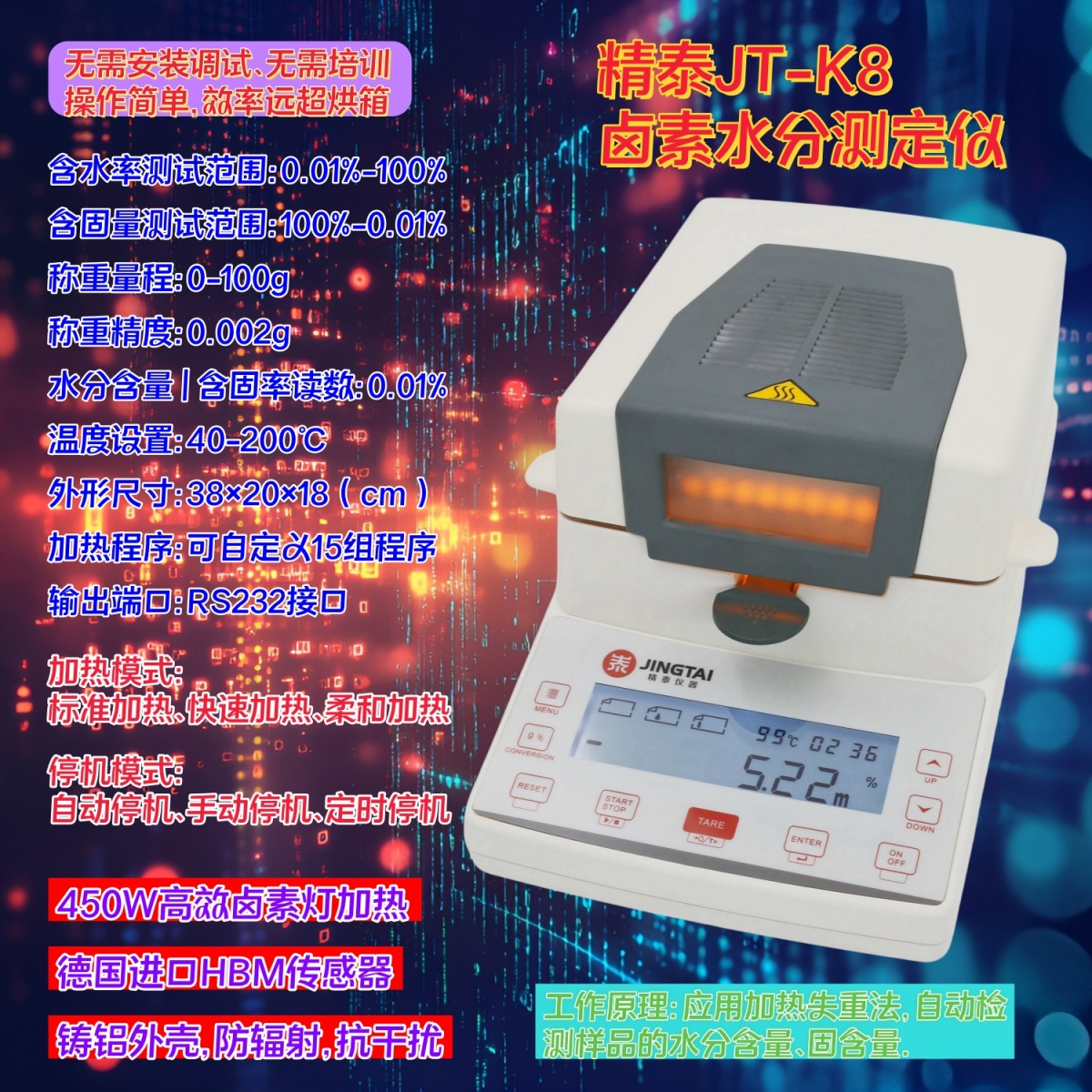 精泰JT-K8卤素快速水分测定仪