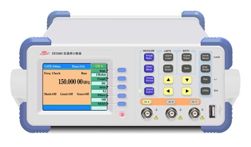EE3385系列高精度通用计数器是我公司新研制的高精度的测频测时仪器。 它们以高性能的AVR单片机为核心, 进行功能控制、 测量时序控制、 数据处理和结果显示。 采用倒数计数技术,实现全范围内的等精度测量。 除了具有频率、 周期、 时间间隔、 脉宽、 占空比、 相位、 计数等测量功能外,还有多次平均、最大值、最小值、标准偏差、阿仑方差、最大偏差(最大值减最小值)、单次偏差(减预置值)和PPM的测量运算功能。仪器带有外触发\外闸门功能,能够上升沿触发测量(时间测量时)和正闸门内测量频率(频率测量时)。EE3385系列通用计数器机内钟频为150MHz。该机性能稳定,功能齐全,测量范围宽,灵敏度高,动态范围大,精度高,体积小,使用方便可靠。在工业生产、科研计量等领域有着广泛的用途,是传统电子计数器理想的更新换代产品。 主要特点: l EE3385系列采用150MHz钟频,测频分辨率每秒9位,测时分辨率7ns l EE3385系列通道A频率可达150MHz l 采用高性能AVR单片机、大规模集成电路和CPLD器件,仪器可靠性高 l 通道C频率测量最高可达9GHz l 能够测量单次时间间隔和单次脉冲宽度 l 具有极限运算功能 l 具有数学运算功能 l 具有多次平均、最大值、最小值、最大偏差、单次**偏差、单次相对偏差(PPM)、标准偏差、阿仑方差统计运算功能 l 计数测量具有固定闸门内计数功能和手动操作计数功能 l 计数器当前参数自动存储,关机不丢失 l 计数器可存储9个测量状态 l RS232C通用串行接口和Centronics标准打印机接口为标准配置 l 选配USB DEVICE接口 l 选配IEEE488通用程控接口 l 仪器采用QVGA彩色液晶显示,造型美观;体积小,操作舒适 产品主要技术指标: