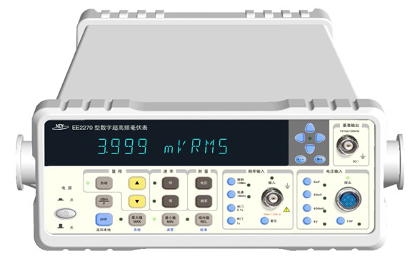 EE2270是一种CPU控制的超高频数字毫伏表/频率计,能测量频率从10kHz到1000MHz,具有功耗低、体积小和重量轻的特点。本仪器频率响应良好,驻波系数小,灵敏度高,电压分辨率1μVrms,测量准确度 ±2%。本仪器能自动调零,是车间生产和实验室超高频电压计量测试必备的仪器。