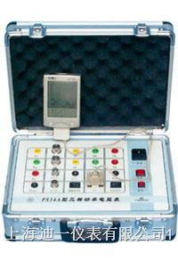 无功功率、无功电能为0.5级。 分辨率为满量程的0.01%。 电压量程为:30V~450V。 电流量程为:1A 、5A(直接测量),5A 、500A(钳表测量)。 相位测量范围为:0~359.9°,分辨率0.1°,准确度 0.05°。 工频测量频率为40Hz~60Hz,**误差为±0.02Hz。 变差:24 hour变差小于±0.01%。 温度影响:在-10~+40℃范围内不大于±0.001%/度。 预热时间:小于5分钟。 上海迪一仪表厂生产的PS34AC型便携式在线三相电能表校验仪由两部分组成:数据采集箱和掌上电脑(PPC)。由于采用掌上电脑对仪器进行控制,本仪器上没有传统现场检校仪的大量按键,使得机箱更显小巧、轻盈,操作起来更加便捷、高效。 数据采集箱面板说明: 电压输入区:由Ua、Ub、Uc、Ucom四个接线端子组成。 直测电流输入区:由Ia、5A、1A; Ib、5A、1A; Ic、5A、1A九个接线端子组成。 500A插座:在使用钳表测量时用来连接500A钳表。 5A插座:在使用钳表测量时用来连接5A钳表。 脉冲出插座:用来输出高频和低频电能脉冲信号。 脉冲入插座:用来接收被校表的电能脉冲信号,可接光电脉冲采样器和手动脉冲。 电源开关:用来接通供电电源。 复位键:当机器工作不正常时按复位键,使机器复位。 通讯接口:通过通讯线与掌上电脑相连,实现测试数据的通讯。 源供/测供开关:用来切换电源线供电与测试线供电的切换开关。 5A/500A开关:当使用直接测量和5A钳测时开关置于5A端,当使用500A钳时将开关置于500A端。 PS34AC型便携式在线三相电能表校验仪 |