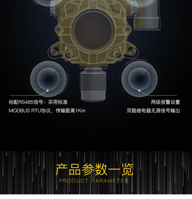 保时安K-G60(O2)工业用氧气气体报警器探测器是专为监测工业气氛中氧气浓度而设计的固定式气体检测仪。其广泛的量程范围(0~30%VOL)及可选量程,如0~30%VOL,配合0.1%VOL的高分辨率,满足不同工业场景的需求。支持多种传感器技术,包括电化学、催化燃烧、半导体、PID光离子和红外气体传感器,确保高精度和可靠性。用户可选择壁挂、管道、流通或泵吸等多种安装方式,以适应各种场合。传输方式灵活,包括标配的4-20mA和RS485通信,可选配433MHz无线传输功能,采用标准MODBUS RTU协议,适用于不同通信环境。设备具备快速响应、低线性误差、小零点漂移、短恢复时间等特点,可在-20~50℃的温度范围内稳定运行。符合防爆标志(Exd II T6 GB)、防护等级IP65的工业标准,同时配置两组继电器输出,为工业安全提供可靠监测与保护。