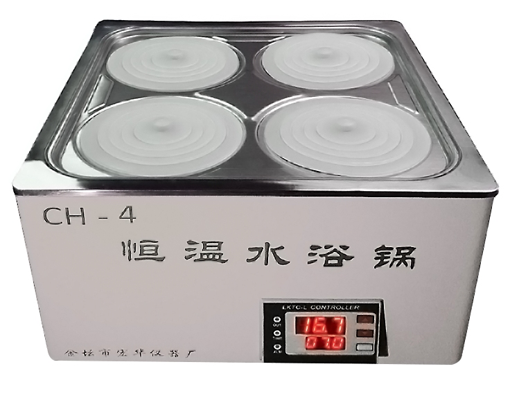 宏华 CH-4 数显恒温水浴锅(四孔)采用304不锈钢一次拉伸成形的内胆,取代传统焊接工艺,确保长期使用无漏水,耐腐蚀性能优越。不锈钢盖板、硅胶圈盖,隐藏式出水管设计。四角和底部弧形设计,避免温控死角,保证水温均匀性。数字显示、自动控温,操作简便。广泛用于干燥、浓缩、蒸馏、化学试剂浸渍,是生物、遗传、病毒、水产等实验室的可靠工具。规格参数包括控温范围RT+~99.9℃,温度波动度±0.5℃,13L的工作槽容积,四孔位,800W的加热功率,满足多样实验需求。 CH-1 304不锈钢水浴锅内胆采用304上等不锈钢一次拉伸成形,替代原产品的焊接工艺,确保在长期使用过程中无漏水现象,耐腐蚀性能好。采用不锈钢盖板和硅胶圈盖(高温不烫手),隐藏式出水管。四角和底部为弧形设计,在加热过程中不易产生温控死角,影响水温的均匀性。温控精度高,数字显示,自动控温。CH-1 304不锈钢水浴锅外壳同样采用一次拉延挤压成形工艺,外壳采用冷轧板表面喷塑,四角为外圆弧设计,美观大方,提高了仪器在使用和运输过程中的抗摔,抗压能力,易于清洗。 CH-1 304不锈钢水浴锅广泛位用于干燥、浓缩,蒸馏、浸渍化学试剂,浸渍*品和生物制品, 也可用于水浴恒温加热和其它温度试验,是生物、遗传、病毒、水产、环保 、生化实验室、分析室教育科研的所需工具。