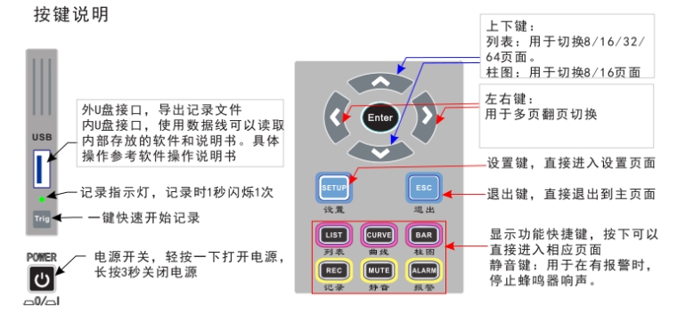 技术参数 型号 | WT200-24 | 显示方式 | 7寸TFT真彩液晶工业触控屏 | 显示形式 | 实时列表数值,实时柱形图,实时曲线图 | 记录查询 | 可在本机.上查询历史曲线,历史报警记录。 | 通道数量 | 24通道 | 热电偶 | KJETNSRB | 基本准确度 | 0.2℃+2字(不含热电偶误差) | 测量范围 | -200~1820℃(以热电偶分度范围为准) | 冷端补偿 | 精度:0.5℃ | 分辨率 | 0.1℃ | 校正 | 每通道独立误差修正Y=kx+b(x=测量值) | 文件数量 | 64个(循环记录) | 文件容量 | 一个文件可以记录13万组数(不区分通道数) | U盘接口 | 导出记录文件,也可读取内置记忆体存放的软件文件. | 记录时长 | 1秒记录间隔可连续记录97天,计算总时长=记录间隔X97天。 | 采样速度 | 每通道快速:0.1S,中速: 0. 5S,慢速: 1S | 通道间隔离 | 交流/直流电高达350V,高压带电测量,超强抗干扰能力 | 控制输出 | 标配2路继电器输出(可以设置回差值和延时) | 报警声 | 一路蜂鸣器响声(任意报警时响起,可设静音) | 记录间隔 | HH:MM:SS,时分秒任意调整(1S~24H: 60M:60S) | 通讯接口 | USB、RS485、 RS232、LAN标配四种接口。 | 供电电源 | AC85-265V士10%,频率50Hz/60Hz<10W | 热电偶 | 每通道配标一条2米K型热电偶 | 尺寸 | 宽31 0X深330X高135mm | 重量 | 约5Kg(配置不同有所区别) | 环境条件 | 5~40℃, 20%~80%RH (无结露) |