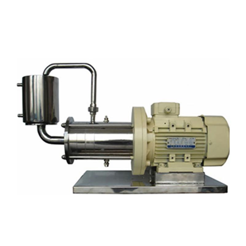 设备简介 实验室三级管线式乳化泵工作腔内装有三组转定子,转、定子可选单层、两层到六层不同配置,电机高速旋转时,多层转定子产生强大抽吸力,将物料吸入工作腔中,在物料从吸料口到出料口的过程中,经过多级多层转定子的多次分散、剪切、乳化,并经过循环、连续分散、剪切、乳化,最终得到稳定的高品质产品。适合于液液或互溶性教好物料的混合、分散、溶解、乳化。 工作原理 实验室三级级乳化泵采用卧式结构;在狭长的工作腔内装有三组转定子,转定子对耦精密配合;由电机带动中间轴进行高速运转,转定子形成真空,物料从双层料桶进口被吸入转定子腔内,强大动能使转子产生极高的线速度,使物料在转、定子间隙之间经过强烈的撞击、破碎、离心挤、液层摩擦、强力剪切之后飞射出去,在多种不同方向力的作用下,产生强大紊流,物料从出口流出并进入双层料桶循环,从而使不相溶的固相、液相、气相等多种介质在瞬间均匀精细、分散乳化,使产品达到稳定的高品质产品。 应用范围 【物料粘度】:≤20000cps 【生产能力】:单次5-20L 【应用领域】:适用于生物、食品、涂料、油墨、纺织助剂、化妆品、润滑油、农药等行业产品物料的分散、乳化均质。 【适用物料】:固体与液体,液体与液体混合形成溶液、胶体、悬浊液或乳浊液的过程皆可使用;如果汁、汤料、乳制品组织匀浆、化妆品、表面活性剂、沥青、乳化剂、油田化学品等千余种物料。 产品优势 操作简单方便 自带循环料筒,输送能力好,溶剂自循环清洗方便,无需额外配备输送泵,双层冷却桶,设备升温低。 实验效率高,产品品质稳定 设备线速度20m/s以上,能够快速的将一种相均匀物料分布到另一种或多种物料中,达到细化均质、分散乳化效果,最终产品稳定,不易分层。 加工精度高 转定子采用锻件材料、CNC加工中心加工,转定子间隙极小,剪切极限细度好,乳化分散效率高率高,采用双端面机械密封设计,无泄漏,减少维护成本。 非标性强 材质可根据要求定制SS304、SS316L/钛合金/钛钼镍合金等非常规材料;可定制防爆型设备,可选配变频调速。 技术参数