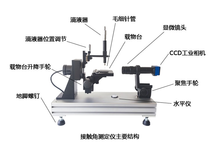 接触角测量仪主要由5个部分组成