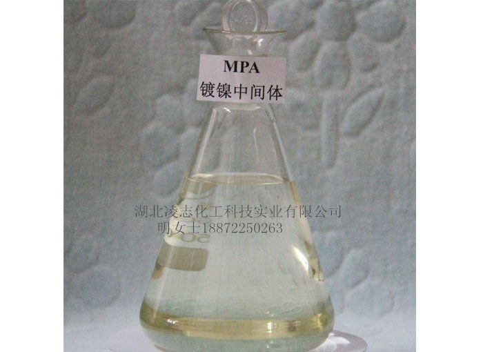 MPA 化学名: 2-甲基-3-丁炔-2-胺 分子式: C5H9N 分子量: 83.12 CAS NO. 2978-58-7 一、公司产品特性 具有整平强,镀层均匀,晶粒细化,耐盐雾实验,是高档光亮剂必备选择。 二、质量标准Q/LZ 29-2008 外 观 无色至淡黄色液体 含 量 ≥95%(GC) 水溶性 易溶于水 比 重 0.821-0.823 三、产品应用 用 量 1~10mg/L 消耗量 1.5g/KAH。 作 用 电镀镍之光亮剂,强整平剂。低区效果特佳,同时使镀层结晶细腻,耐盐雾试验。 特 点 需酸化,不可直接使用。 mso-spacerun:'yes';font-family:宋体;color:rgb(51,51,51);font-size:12.0000pt;mso-font-kerning:0.0000pt;" >其本身还可以用到锂二次电池中,用于增强电池循环次数和使用寿命。也用于化妆品的配制及制药工业 |