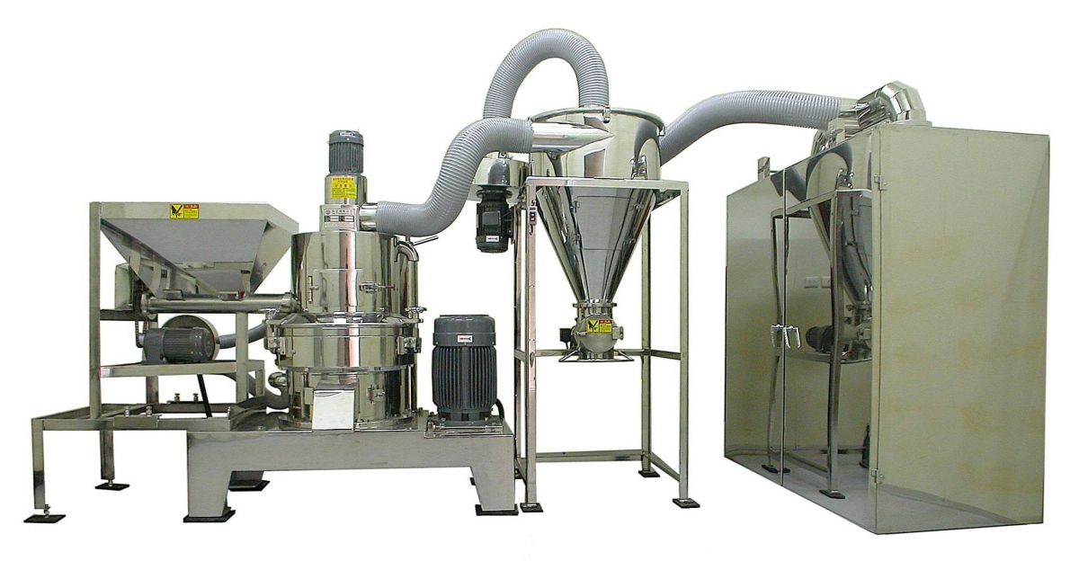 该机是在传统机械粉碎机的基础之上,优化设计锤头、齿圈的机构,最大程度的提高锤头和齿圈对物料的摩擦、剪切和碰撞,改变原来的普通筛分结构。 机械式粉碎机物料由进料装置输送至主机粉碎腔,物料与高速回转器件及颗粒之间互相冲击、碰撞、磨擦、剪切、挤压而实现粉碎。粉碎后的物料通过分级轮实现粗细粉的分离,粗粉流入粉碎腔再次粉磨,净化的气体由引风机排出。 二、性能优势及特点 机械式粉碎机是我公司自主研制的新型机械粉碎设备,设备综合性能指标达到世界先进水平,已成为众多超细粉体加工的首选设备。 1、低能耗:集离心粉碎、冲击粉碎、挤压粉碎于一身,比其它类机械粉碎机节能高达40~50%。 2、高细度:配备自分流式分级系统,产品细度≥2500目。 3、入料范围大:入料粒度≤50mm,物料仅需经一级粗破设备。 4、低磨损:粉碎部分易损件采用复合耐磨新材料,使用寿命长,加工莫氏硬度≤5的物料时无污染。 5、机械稳定性强:可长期24小时不停机生产。 6、功能全:可粉碎针状物料,做到成品长径比15:1;粉碎过程无温升,适合于热敏性材料的粉碎;可对烧结团聚超细物料进行打散作业,粒度恢复率达 100%;具有颗粒整形功能,有效提高堆积密度;可粉碎纤维组织的材料;可粉碎水分含量高的物料,具有烘干功能;可粉碎粘性强的物料。 7、负压生产,无粉尘污染,环境优良。 8、自动化程度高,稳定性强,操作简便。 三、应用领域 广泛应用于非金属矿业、化工、建材、食品、医药、农药、饲料、新材料、环保等行业和各种干粉类物料的超细粉碎、打散及颗粒整形。 ![]() |